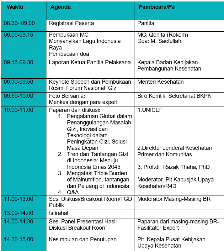 Setiap breakout room dirancang untuk menyoroti tantangan dan peluang pada bidang gizi tertentu. Dengan fokus ini, peserta diharapkan dapat menyampaikan masukan yang relevan dan memberikan rekomendasi kebijakan yang berdampak nyata.