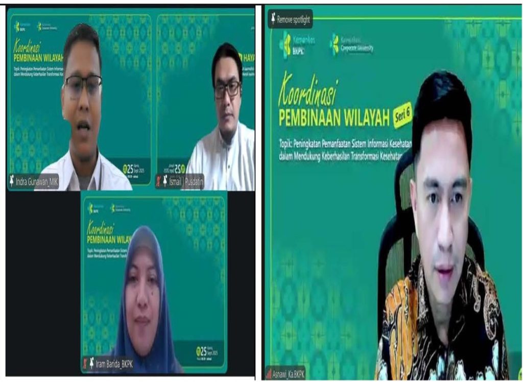 Jakarta – Kementerian Kesehatan (Kemenkes) menggelar Pertemuan Koordinasi Pembinaan Wilayah Seri ke-6 untuk mengakselerasi pemanfaatan sistem informasi kesehatan dalam mendukung keberhasilan transformasi kesehatan yang terintegrasi. Pertemuan yang dilakukan secara daring (25/9) dihadiri oleh hampir 300 peserta dari dinas kesehatan provinsi dan kabupaten/kota. Pertemuan ini menyoroti urgensi penyatuan ratusan aplikasi kesehatan ke dalam satu platform nasional, SATUSEHAT, guna mendukung keberhasilan transformasi kesehatan.