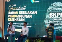 Jakarta – Badan Kebijakan Pembangunan Kesehatan (BKPK) Kementerian Kesehatan RI menggelar Pelantikan dan Pengambilan Sumpah Jabatan Pejabat Fungsional di lingkungan BKPK. Acara ini dilaksanakan di Ruang Rapat Arslonga pada Selasa (27/06). Kepala BKPK Syarifah Liza Munira menyampaikan apresiasi kepada pejabat fungsional yang dilantik. “Saya ucapkan selamat kepada 47 orang Pejabat Fungsional yang baru saja dilantik dan diambil sumpahnya, yang terdiri dari: 2 Analis Kebijakan, 18 Administrator Kesehatan, 6 Perencana, 4 Pustakawan, dan 13 Pranata Laboratorium Kesehatan, serta 1 Arsiparis dan 3 Administrator Kesehatan dari Sekretariat Jenderal Kementerian Kesehatan” ungkap Liza.