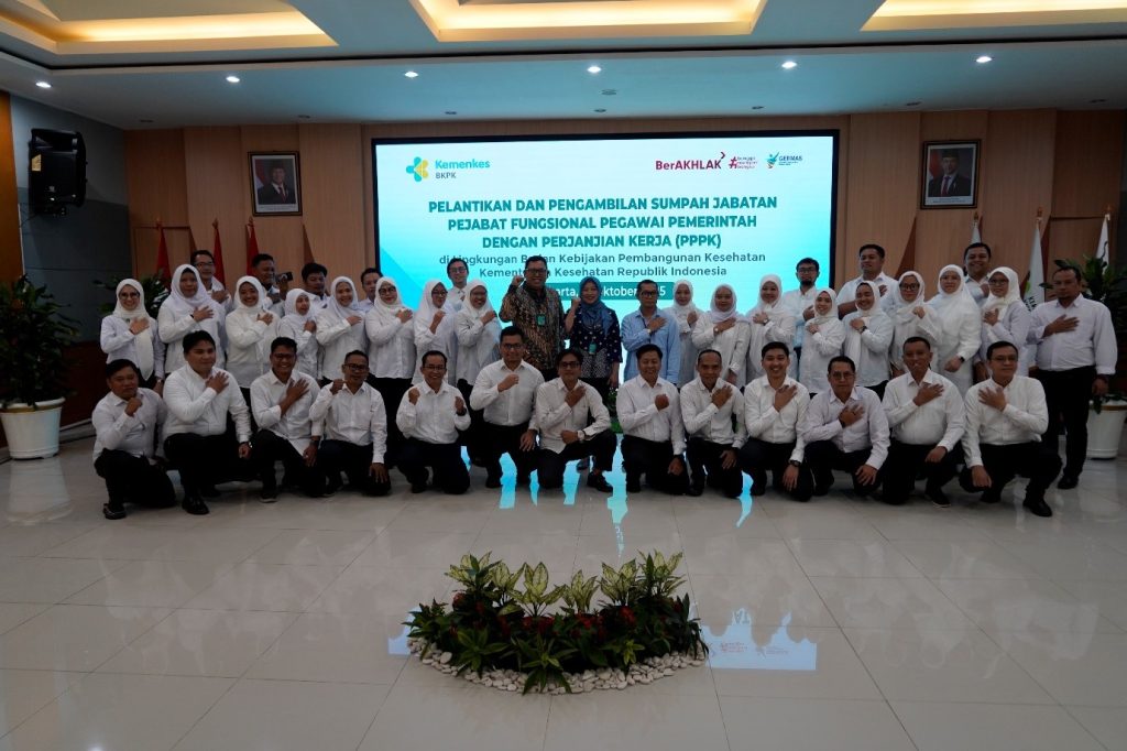 Jakarta – Sekretaris Badan Kebijakan Pembangunan Kesehatan (BKPK) Kementerian Kesehatan Etik Reno Wiyati, dalam sambutannya pada acara pelantikan Pegawai Pemerintah dengan Perjanjian Kerja (PPPK) di Ruang Ars Longa (1/10), mengajak seluruh pegawai untuk bekerja dengan integritas dan memberi manfaat bagi organisasi.