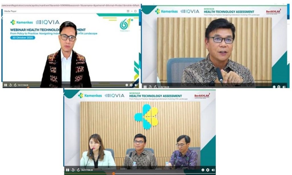 Jakarta-Dalam rangka memperingati Hari Kesehatan Nasional ke 61, Kementerian Kesehatan melalui Badan Kebijakan Pembangunan Kesehatan (BKPK) berkolaborasi dengan IQVIA menyelenggarakan Webinar Health Technology Assessment (HTA) dengan tema HTA From Policy to Practice: Navigating Indonesia’s Evolving HTA Landscape pada Kamis (30/10). Webinar ini menjadi sarana pertukaran pengetahuan HTA secara global dan lokal dengan menyajikan perkembangan terkini dan prospek masa depan HTA dari ranah kebijakan menjadi layanan kesehatan yang berkualitas.